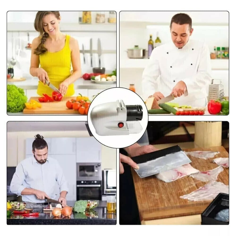 Afilador de cuchillos eléctrico herramienta para afilar cuchillos de cocina y tijeras.-Control libre y afilado rápido.-Este es un innovador afilador de cuchillos, fácil de usar, tiene un borde perfecto en cualquier hoja.-Uso en cubiertos de cocina, tijeras de jardinería, tijeras y más.-Herramienta útil para mantener el cuchillo y tijeras afiladas de forma segura.Tipo: afilador de cuchillos eléctrico.Material: plástico resistente al desgaste + ABS + acero inoxidableTipo: conector USB.Características: Herramienta de afilado de cocina, conveniente de usar, antideslizante, eléctrico.Compacto y portátil: el diseño ergonómico y liviano hace que el agarre sujeción sea y cómoda. Esfuerzos mínimos: eléctrico for cuchillos afila en poco tiempo, simplemente inserte la hoja en la ranura y presione el botón de encendido.