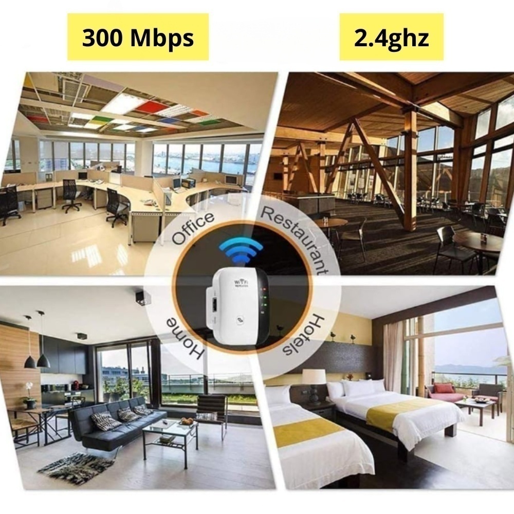 Con la ayuda del repetidor wifi podrás conectarte a Internet en cualquier sitio desde tu red.Permitirá a tu Router conectar a varios dispositivos a la vez, asegurando que todos ellas tengan una conexión lo más estable posible.Gracias a su avanzada tecnología crea una red WiFi que puede llegar hasta 50 metros en espacios abierto, ampliando de esta forma el alcance de tu red WiFi.Los puntos muertos sin WiFi , lentitud de conexión y otros problemas de conexión serán cosas del pasado con este productoSimplemente presione el botón WPS en el enrutador y repetidor WiFi para establecer una conexión segura con un solo clic para extender la señal WiFi.Amplía tu cobertura WiFi existente a los puntos débiles de WiFi, y luego tendrás WiFi fuerte y estable en cualquier lugar de toda tu casa.* Mejora la Cobertura de Redes Inalámbricas WLAN.* Velocidad de Alta al Acceso Inalámbrico WLAN 802.11n.* Velocidad de Baja Compatible con 802.11g (54 mbit/s) y 802.11 b (11 mbit/s).* Antenas Integradas.* Velocidad Máxima de Transmisión 2.4 GHz.* La Configuración del Repetidor debe realizarse mientras estas conectado a la red wifi2.4ghz (no a 5.8ghz)* NO mejora la Velocidad del Router Principal, solo AYUDA a que la Señal llegue a masDistancia y Lugares.* Velocidad de Transmisión 300 Mbps.* Incluye Puerto LAN Ethernet de 10/100 Mbps.* Diseñado para Ampliar o Mejorar la Cobertura de Wifi, NO para mejorar la velocidad.
