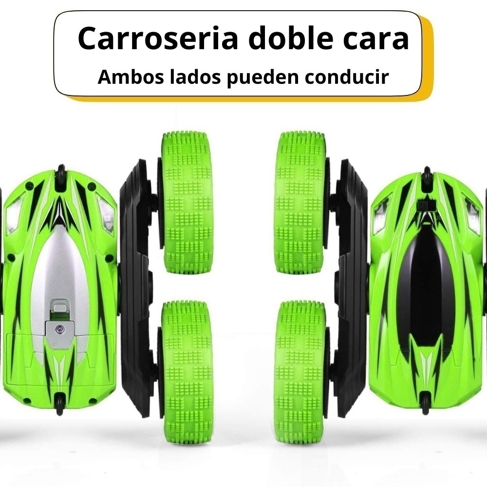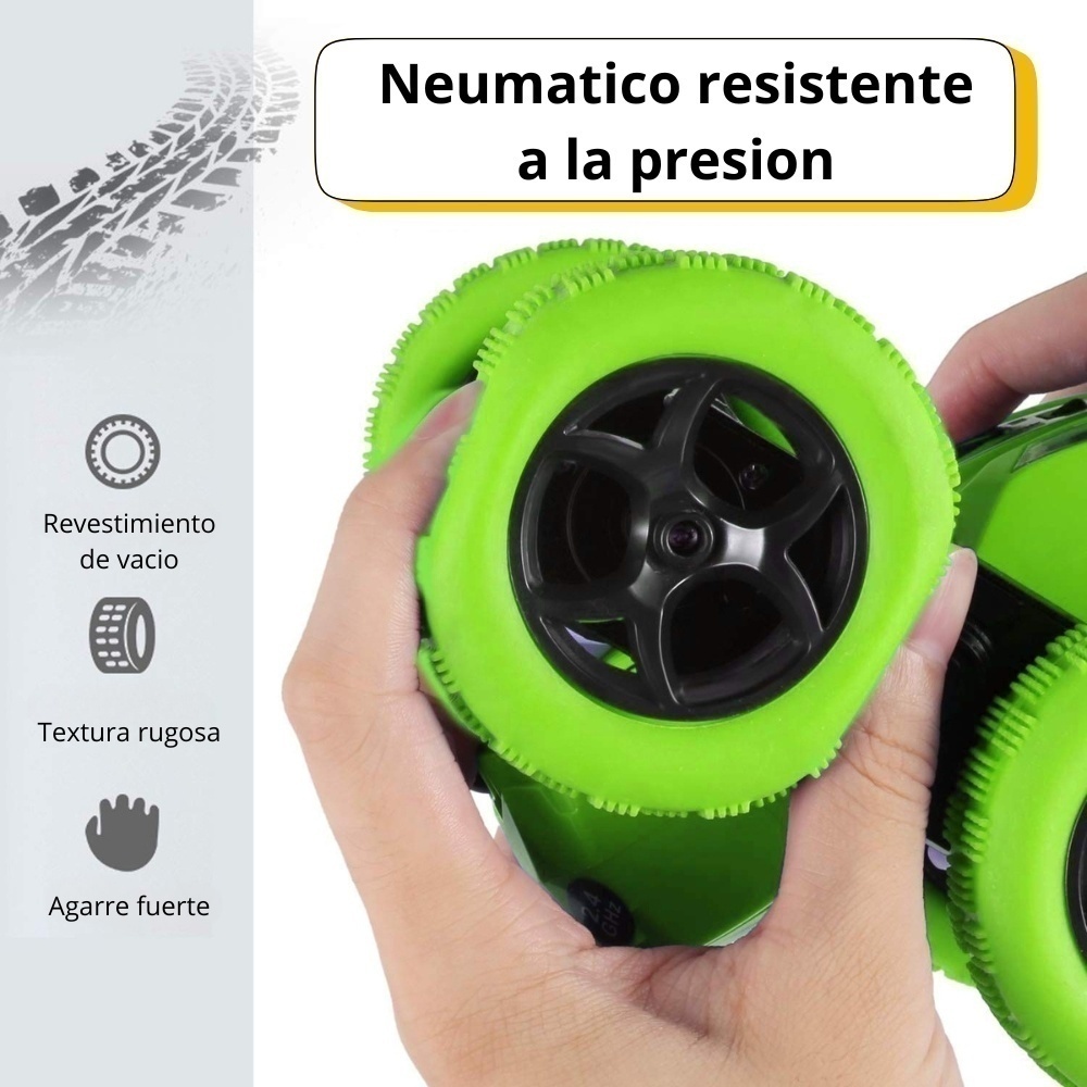 Vehículo de acrobacias todo terreno, diseñado con movimientos extremos en todas direcciones, adelante, atrás, izquierda, derecha. Con giros que alcanzan los 360 grados de rotación, gracias a sus 4 ruedas con tracción a prueba de golpes con textura cóncava- convexa lo hacen ideal para todo tipo de piso como tierra, césped, arena, grava y mucho más.Se derrapa generando movimientos increíbles que le encantarán a chicos y grandes garantizándote horas de diversión y convivencia familiar. Cuenta con 2 potentes motores que elevan el vehículo a una velocidad de hasta 10 km/h, equipado con luces LED que harán que tengas una experiencia superior. Creado con materiales POM premium de alta calidad, ya que genera una firmeza superior a los ABS y lo hacen capaz de soportar golpes leves, choques y caídas.Se controla vía remota y funciona con baterías recargables de 3,7 V 500 mAh que te brindarán hasta 22 minutos de diversión constante.