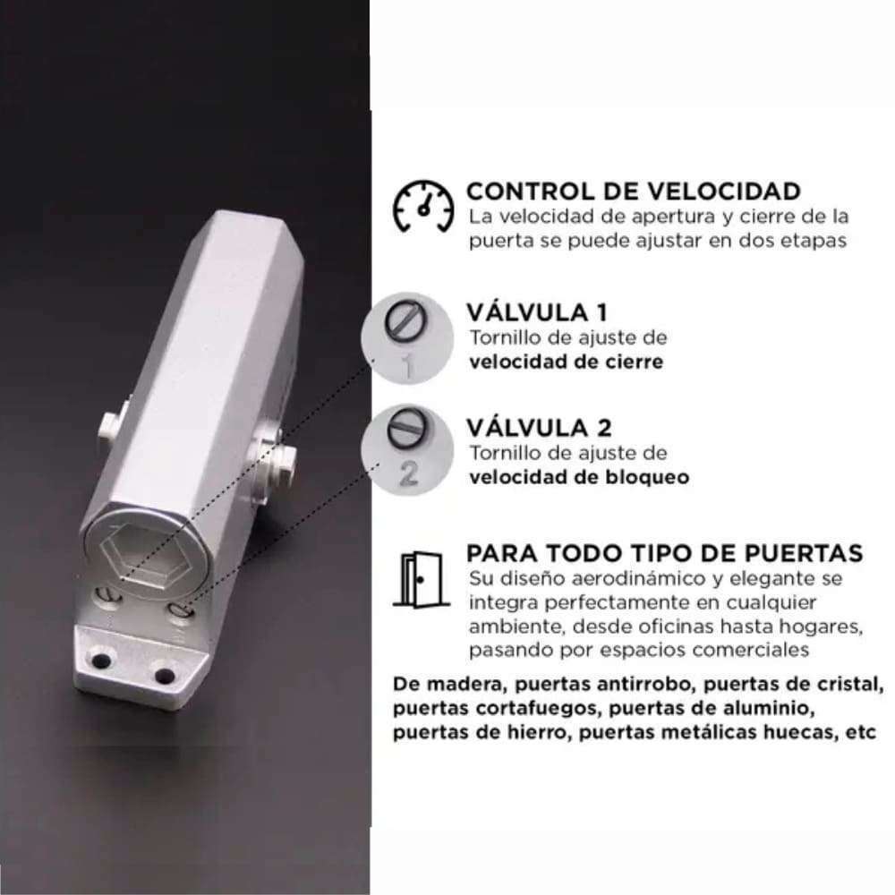 ¡Presentamos nuestro Cierre Hidráulico Brazo Cierra Puerta Aéreo, la solución perfecta para garantizar la seguridad y comodidad en tus espacios!Este innovador dispositivo ha sido diseñado con precisión para puertas que pesan entre 25 y 45 kilogramos, proporcionando un cierre suave y controlado que hace que las puertas se sientan casi como si se cerraran por sí solas.Nuestro cierre hidráulico ofrece una experiencia excepcional al usuario, permitiéndote abrir y cerrar puertas con facilidad, eliminando golpes y portazos molestos. Además, su diseño aerodinámico y elegante se integra perfectamente en cualquier ambiente, desde oficinas hasta hogares, pasando por espacios comerciales.