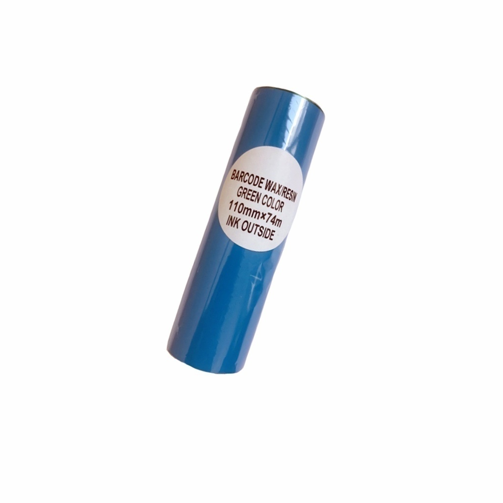 Ribbon Mezcla- Color 110x74 1/2" OUT - Verde   Buje: 1/2"   Bobinado: OUT   Ribbon Cera: Utilizado en impresoras Standard que no requieren de gran anclaje (papel ilustración). Ribbon Mezcla: Producto de mejor calidad que la cero en inferior a la resina. Ribbon Resina: Utilizado en materiales de OPP que tienen una gran exposición a temperaturas externas.