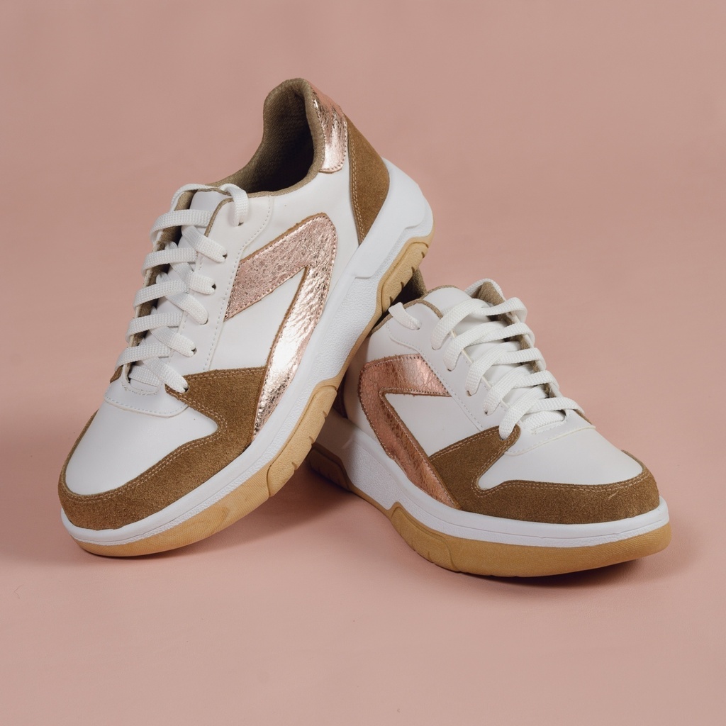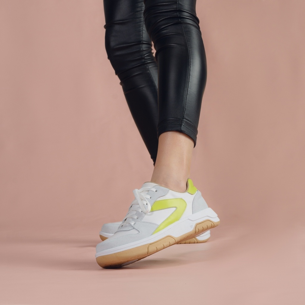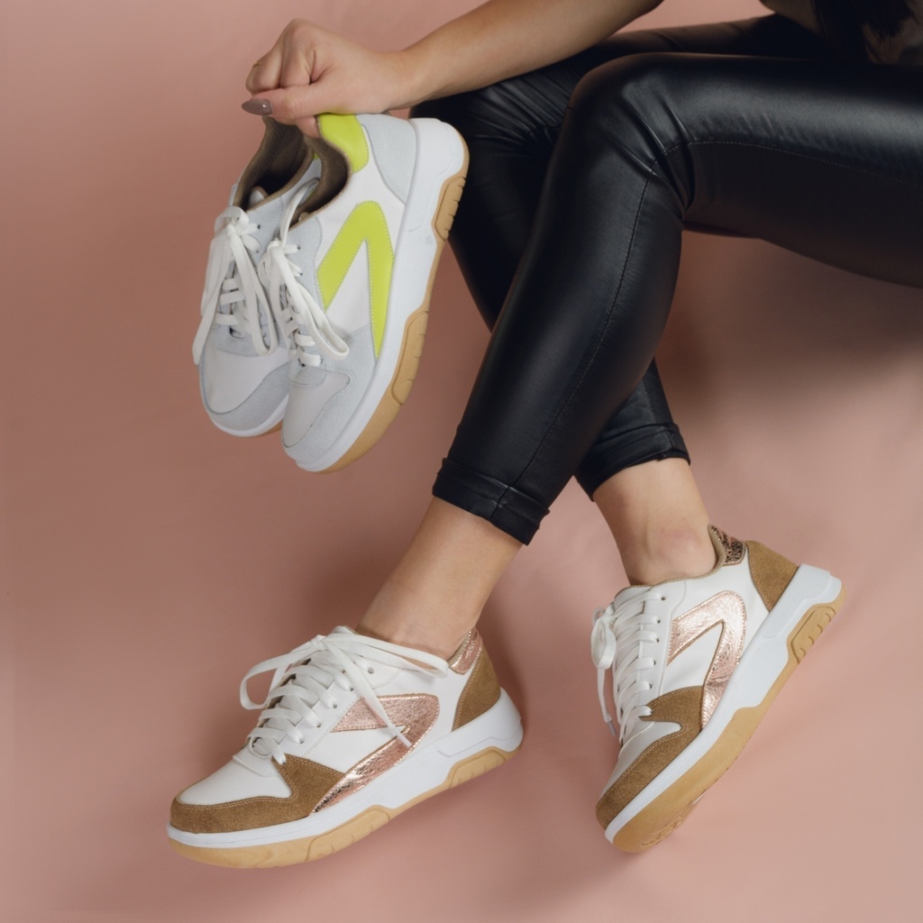 Descubrí la comodidad y estilo de las zapatillas Ruby. Confeccionadas con capellada de cuero, forro de eco cuero y base antideslizante, son ideales para acompañarte en cualquier actividad del día. Disponibles en colores blanco con detalles cobre y blanco con detalles verdes, combinan confort y elegancia en cada paso. Guía de talles:- Talle (AR), Largo del Pie- 35, 23.2 cm- 36, 23.8 cm- 37, 24.3 cm- 38, 25 cm- 39, 25.8 cm- 40, 26.6 cm Cómo tomar tus medidas corporales: Largo del Pie Sobre un papel, dibujá el contorno de tus pies descalzos. Medí desde el dedo más largo hasta la altura del talón. Sumale 0,5 cm de holgura.