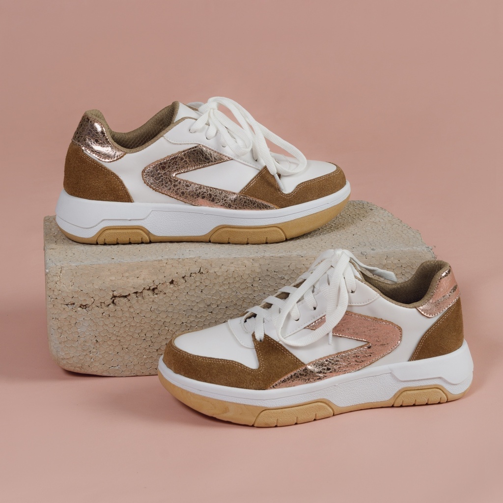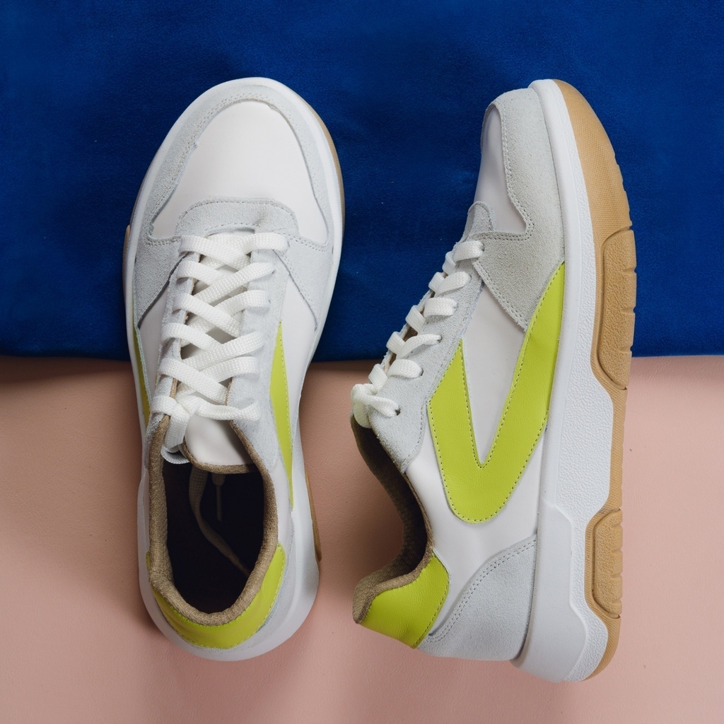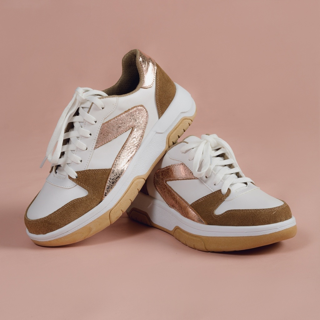 Descubrí la comodidad y estilo de las zapatillas Ruby. Confeccionadas con capellada de cuero, forro de eco cuero y base antideslizante, son ideales para acompañarte en cualquier actividad del día. Disponibles en colores blanco con detalles cobre y blanco con detalles verdes, combinan confort y elegancia en cada paso. Guía de talles:- Talle (AR), Largo del Pie- 35, 23.2 cm- 36, 23.8 cm- 37, 24.3 cm- 38, 25 cm- 39, 25.8 cm- 40, 26.6 cm Cómo tomar tus medidas corporales: Largo del Pie Sobre un papel, dibujá el contorno de tus pies descalzos. Medí desde el dedo más largo hasta la altura del talón. Sumale 0,5 cm de holgura.